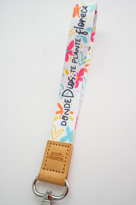 Donde Dios te plante florece Wrist Key Chain
